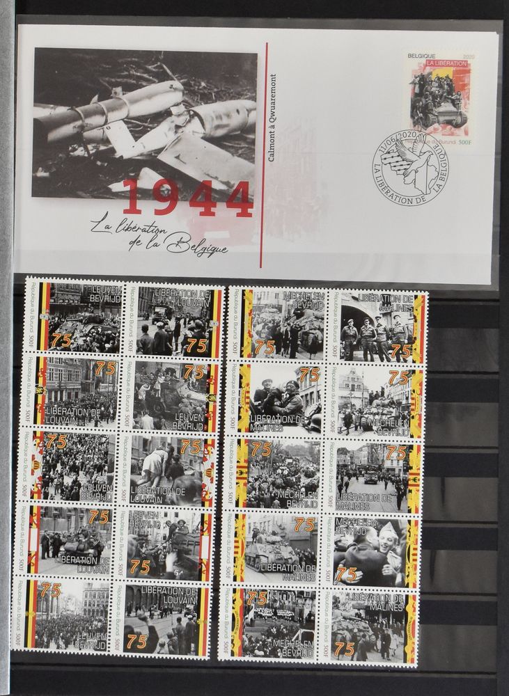 4403 nh/FDC imageWWII, collection of stamps and 91 FDCs in stockbook, including Burundi, Cook Islands, Samoa, commemoration of liberation (private issues), vf(Image 1) (Image 2) (Image 3) (Image 4)