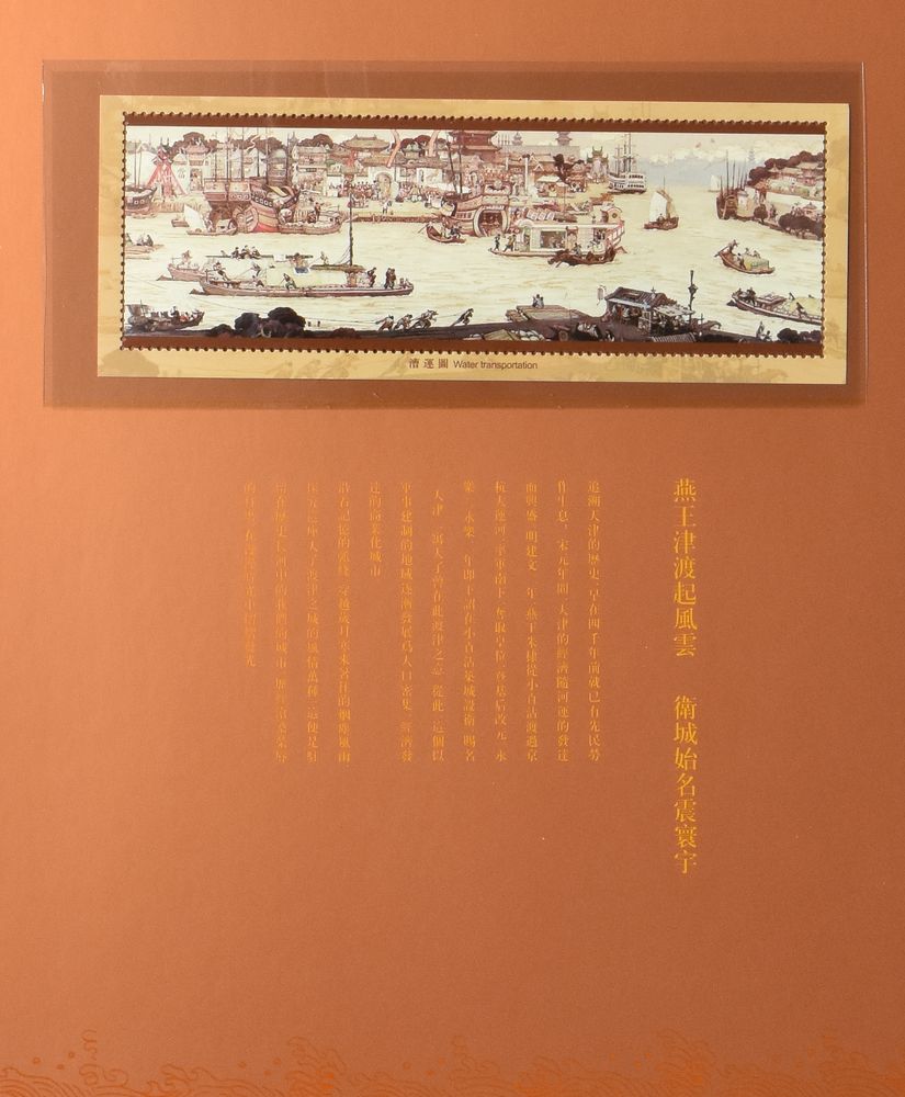4467 nh imageRepresentative gift book including stamps, Tianjin Wei, In the second year of the Yongle reign, he ordered the construction of a protected city in Xiaozhigu, called ‘Tianjin’, meaning that the Son of Heaven had crossed the river here, 38 pages discussing ancient temples, industrial revolution, language: English and Chinese, vf(Image 1) (Image 2)