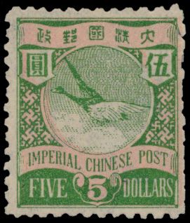 4466 ng imageN° 46 '1897 Bean Goose 5 dollars Imperial Chines post green and pink' no gum, perfs see photo, no other faults, fine, scarce (Mi € 1.200)(Image 1)