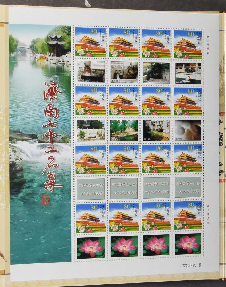 4472 nh imageRepresentative gift book with stamps included, Jinanqishier Mingquan Youpiaozhencang, language: Chinese only, with 5 complete sheets, vf(Image 1) (Image 2)