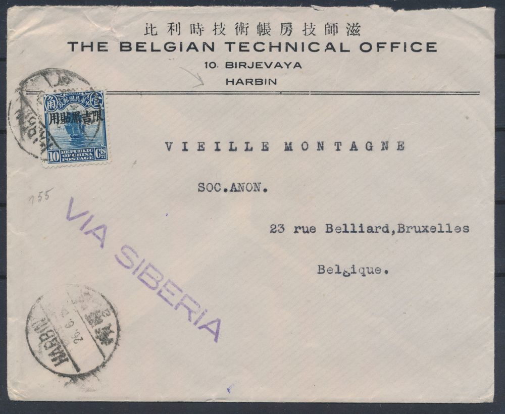 4479 imageManchukuo n° 11 (Yv.) "10c. blue" on cover from Harbin to Brussels via Siberia, vf(Image 1) (Image 2)