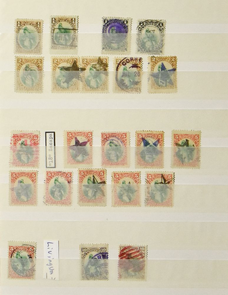 4541 og/0 image1881/1886 Very interesting collection in stockbook with only quetzals (birds) with a large number of different cancellations, for specialists, vf/f/to be checked(Image 1) (Image 2) (Image 3) (Image 4) (Image 5)