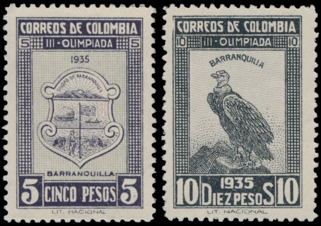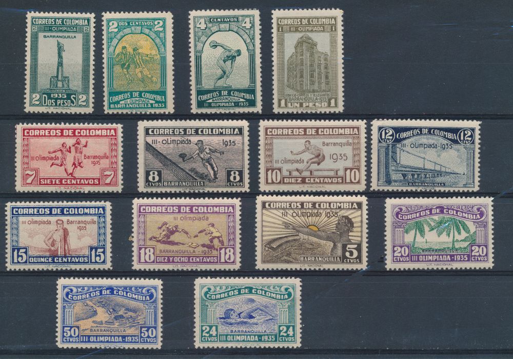 4546 og imageN° 274/89 "1935 - Barranquilla Olympics", virtually invisible hinge, one of the most sought-after set by collectors of sports and birds (Condor!), gum very slightly shaded, vf (Yv. €1,900)(Image 1) (Image 2)
