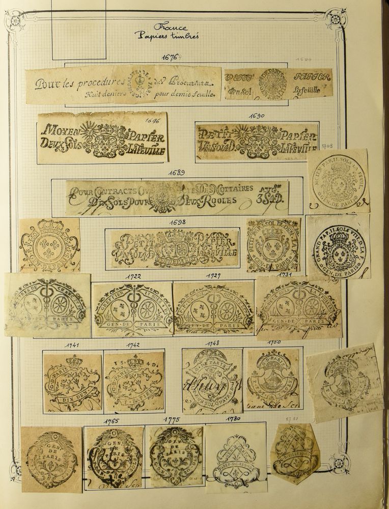 4568 imageVery old collection of cut-outs from documents in a clip binder with many from France (from the 17th century), as well as various other countries, including India, Australia, Russia, historically very interesting, vf/f(Image 1) (Image 2) (Image 3) (Image 4) (Image 5) (Image 6) (Image 7) (Image 8) (Image 9) (Image 10)