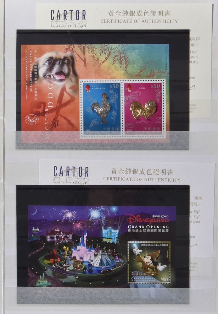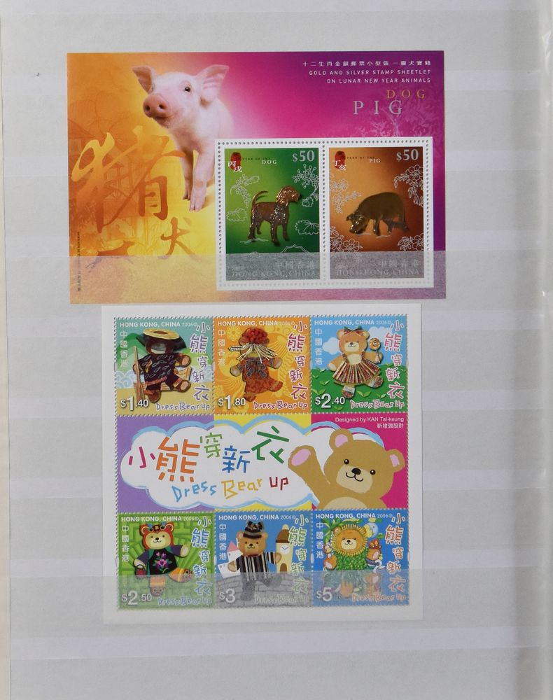 4584 nh/og/0 imageVarious countries in 5 stockbooks, including special issues from Austria and Hong Kong, including Swarovski, embroidered stamps, gold-plated stamps in souvenir sheets, also 3 Hong Kong folders, 2007 Dog Pig (nominal HK $100 per item), vf/to be checked(Image 1) (Image 2) (Image 3) (Image 4) (Image 5) (Image 6) (Image 7) (Image 8) (Image 9)
