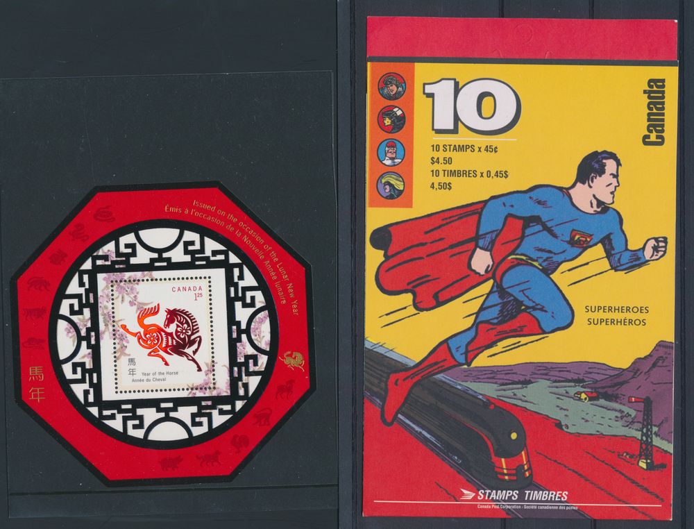 4583 nh imageVarious items in 2 folders, including many Canada souvenir sheets and booklets, 1985 yearbook, special issues Thailand, papal pictorial stamps, vf(Image 1)
