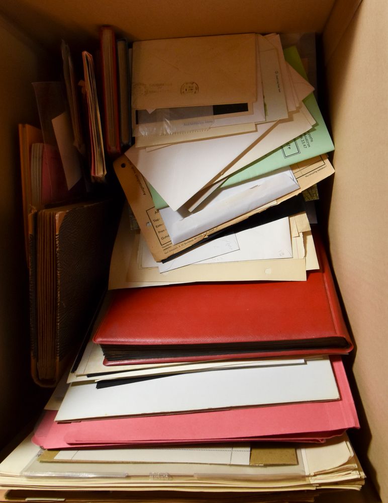 4669 nh/og/0 imageApproximately 80 exchange booklets, hundreds of postal items, etc., as well as 3 books containing various items, vf/f(Image 1)