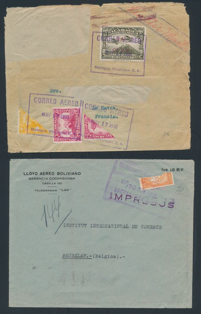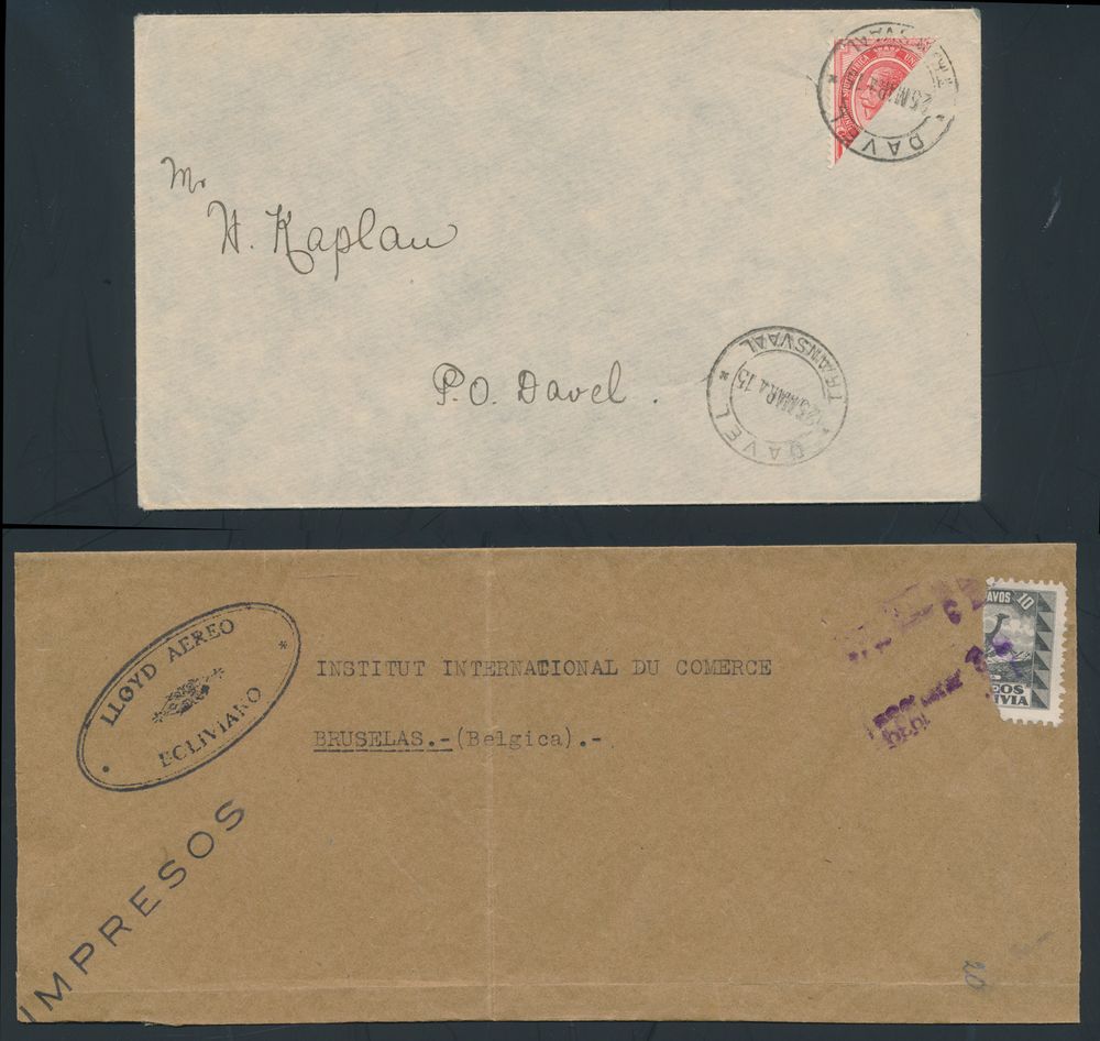 4768 image1915/1938, 5 postal items with half-stamps, including South Africa, others Bolivia (3x) and Nicaragua, vf/f.(Image 1) (Image 2) (Image 3)