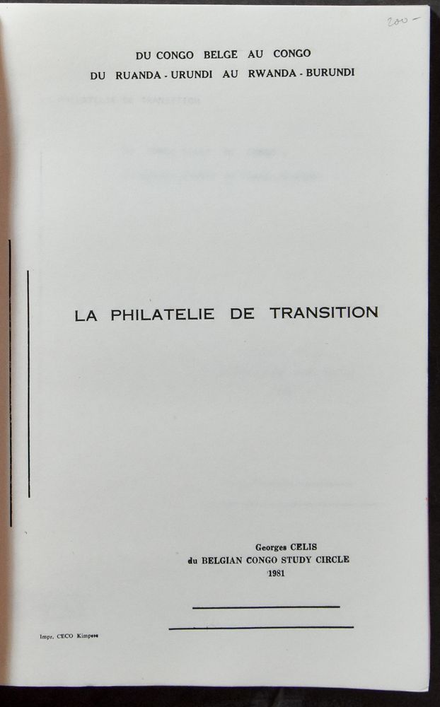 La Philatelie de Transition; Georges Celis; Belgian Congo Study Circle; 1981; Printed; glued; French; +/-90 pag.; soft cover; in good condition(Image 1)