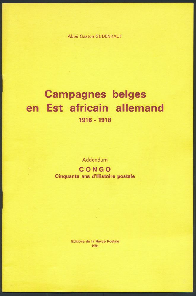 Addendum Congo 50 ans d'Histoire Postale; Abbé Gaston Gudenkauf; Editions of the Postal Review; 1981; Printed; stapled; French; 18 pag.; soft cover; very fine(Image 1)