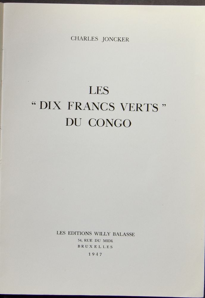 Les "Dix francs verts" du Congo; Charles Joncker; Willy