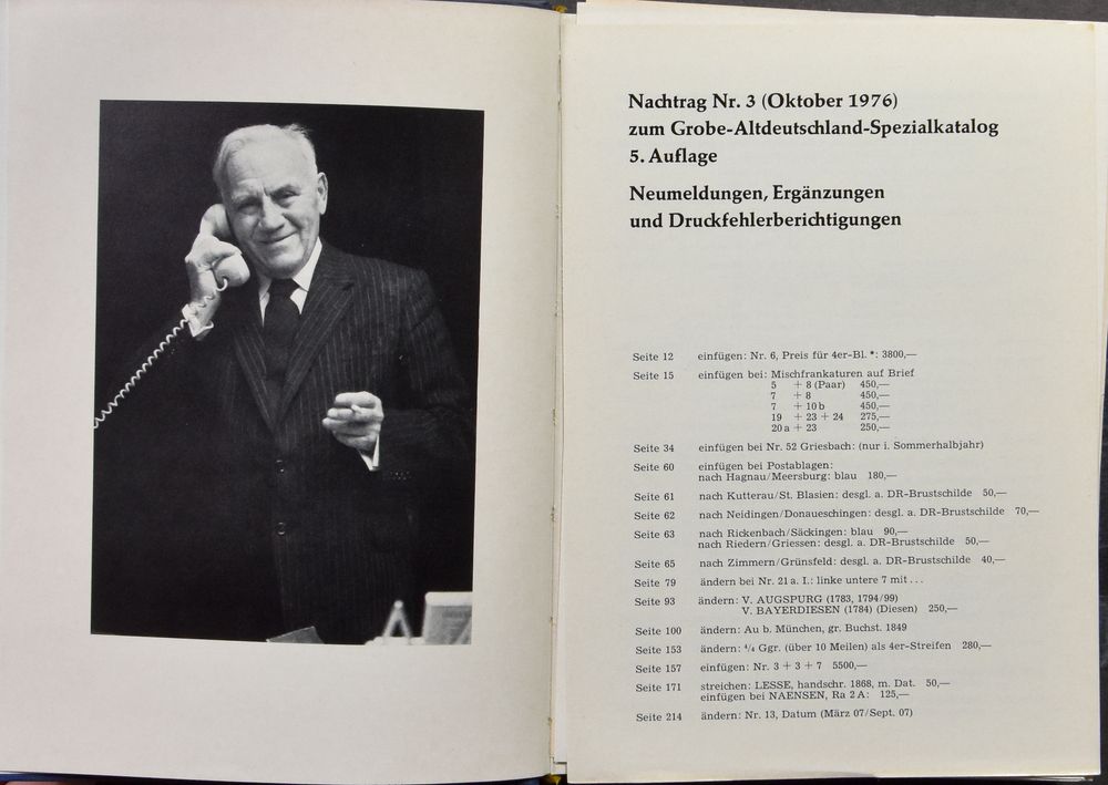 Grobe; Fachverlag Hans Grobe, Hanover; 1975; Printed; bound; German; 717; hardcover; very fine; The 5th and most complete edition of Grobe's famous specialised catalogue of German states, considered by many specialists to be the most important work