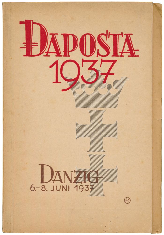Landes-Postwertzeichen-Ausstellung; Waiting in the East, Danzig; 1937; Printed; stapled; German; 63 + 11 pag.; soft cover; in good condition;" the original catalogue published for the famous "Daposta 1937" Philatelic Exhibition in Danzig (on the