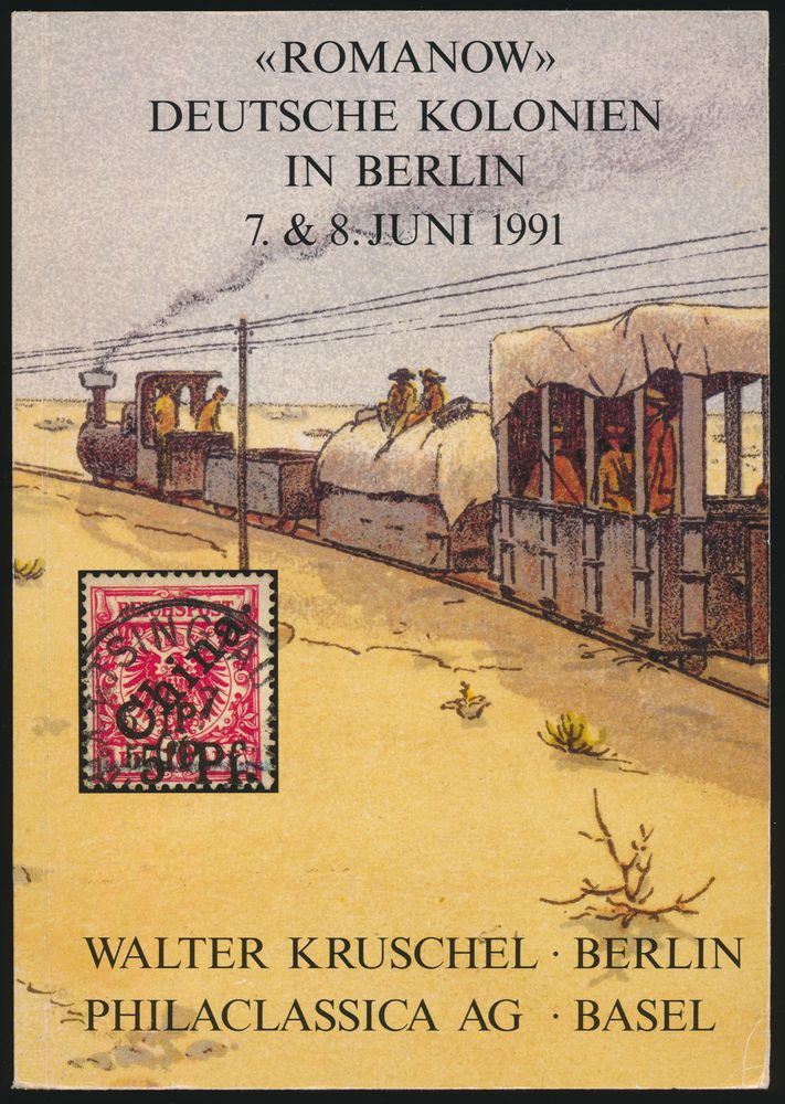 Philaclassica AG; Walter Kruschel, Berlin; 1991; Printed; stapled; German; 432 pag.; soft cover; very fine;" Auction catalogue of the legendary "Romanow" collection of German Colonies, one of the most important reference catalogues for this field and