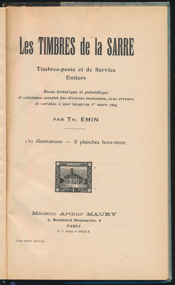 Les timbres de la Sarre; Th. Emin; Arthur Maury Publishing