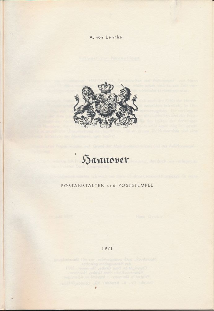 Hannover, postanstalten und poststempel; Arthur Von Lenthe;