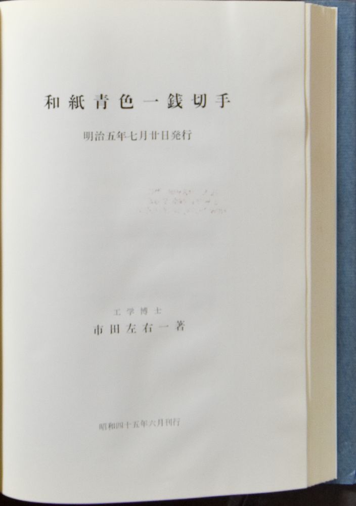 Japan, 2 boeken: "和紙青色一銭切手" (Vertaling: De blauwe washi 1-sen