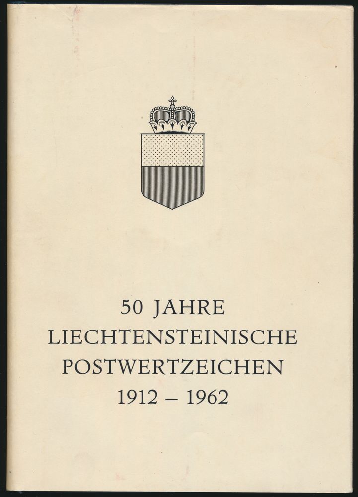1912 - 1962"; Dr Bertrand Adams; Fürstlichen Regierung, Vaduz; 1962; Printed; bound; German; 381 pag.; hardcover; very fine; handbook published by the Liechtenstein government on the occasion of the 50th anniversary of the introduction of postage