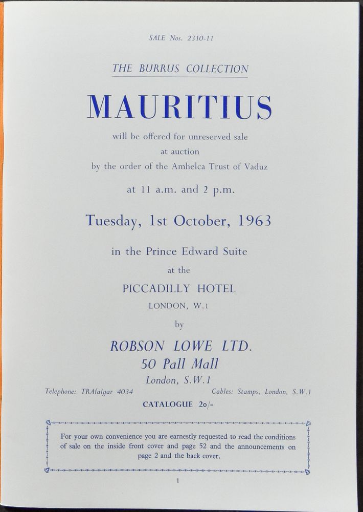 Mauritius, veilingcatalogus, "Burrus Collection Mauritius 1