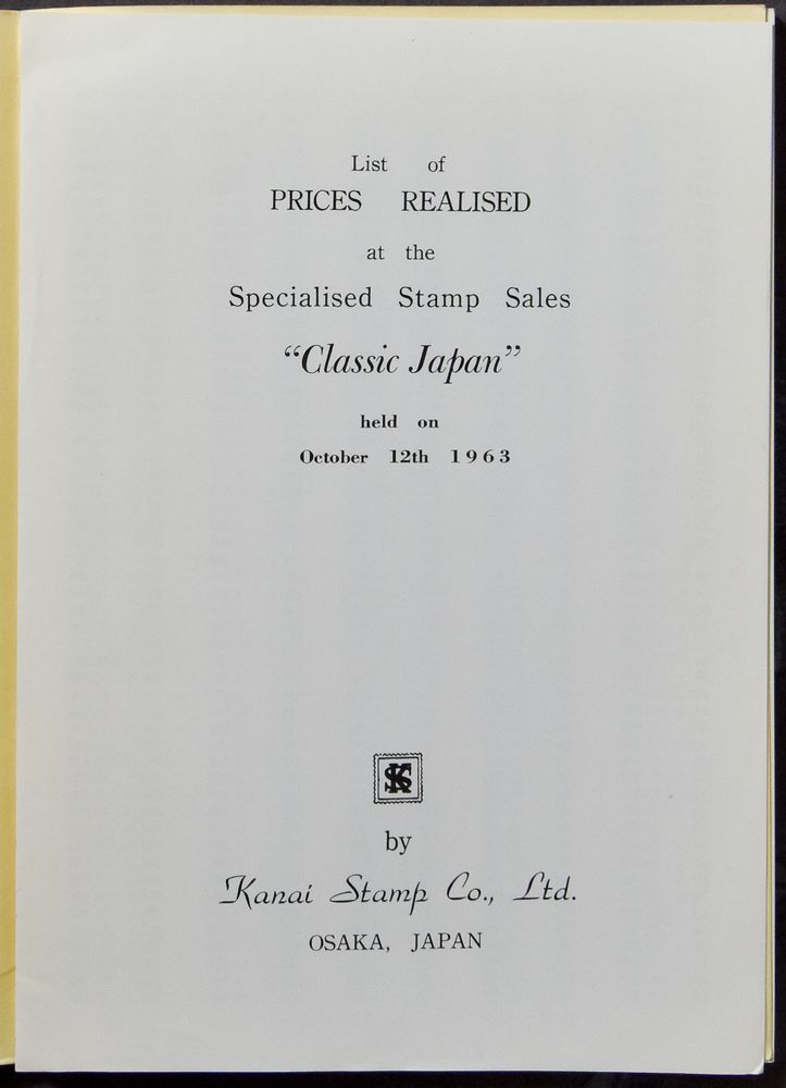 auction, October 12th 1963 * Hotel New Japan, Akasaka Tokyo"; Kanai Stamp Co., Ltd.; 1963; Printed; glued; English; 94 pag.; soft cover; in reasonable condition(Image 1)