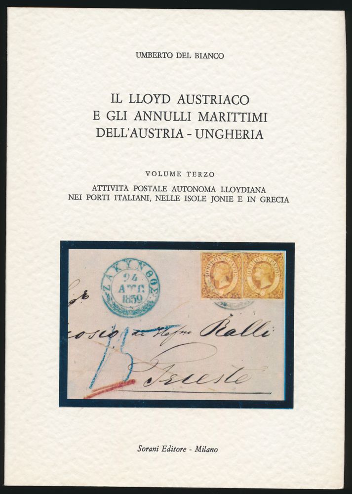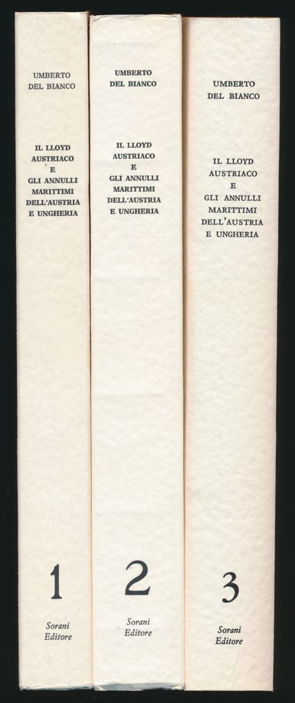 dell'Austria-Ungheria"; Umberto del Bianco; Sorani Editore, Milan; 1976 - 1982; Printed; stapled; Italian; 362 + 478 + 542 pag.; soft cover; as new; the monumental work in three volumes on the postal history and maritime postmarks of Austrian Lloyd