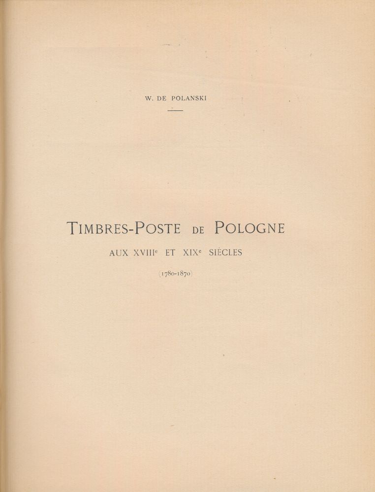 (1780-1870) - essai historique établi sur un plan scientifique et d'après des documents officiels; W. de Polanski;" Edition "Postal Hall", E. Turnowski, Geneva"; 1920; Printed; bound; French; 79 + 50 + 3 pag.; hardcover; very fine; The French edition