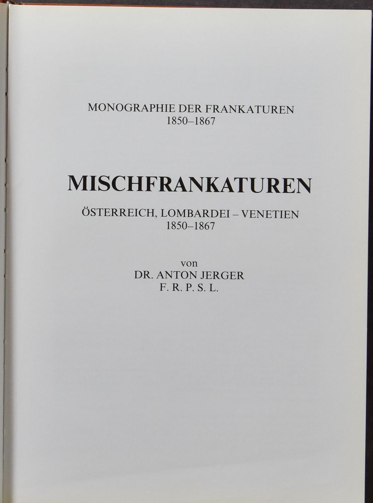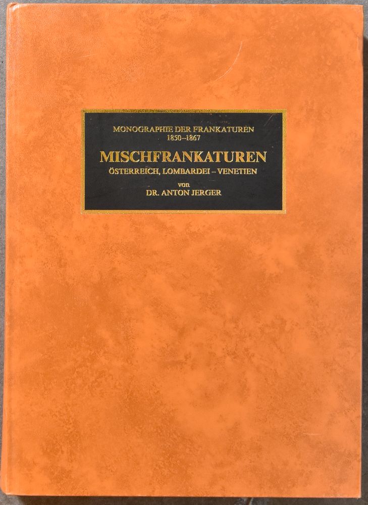 Mischfrankaturen Österreich, Lombardei-Venetien"; Dr Anton Jerger;" Verlag "Die Briefmarke", Vienna"; 1981; Printed; bound; German; 335 pag.; hardcover; very fine; Well-known monograph on Austria + Lombardy-Venetia mixed franking printed in excellent