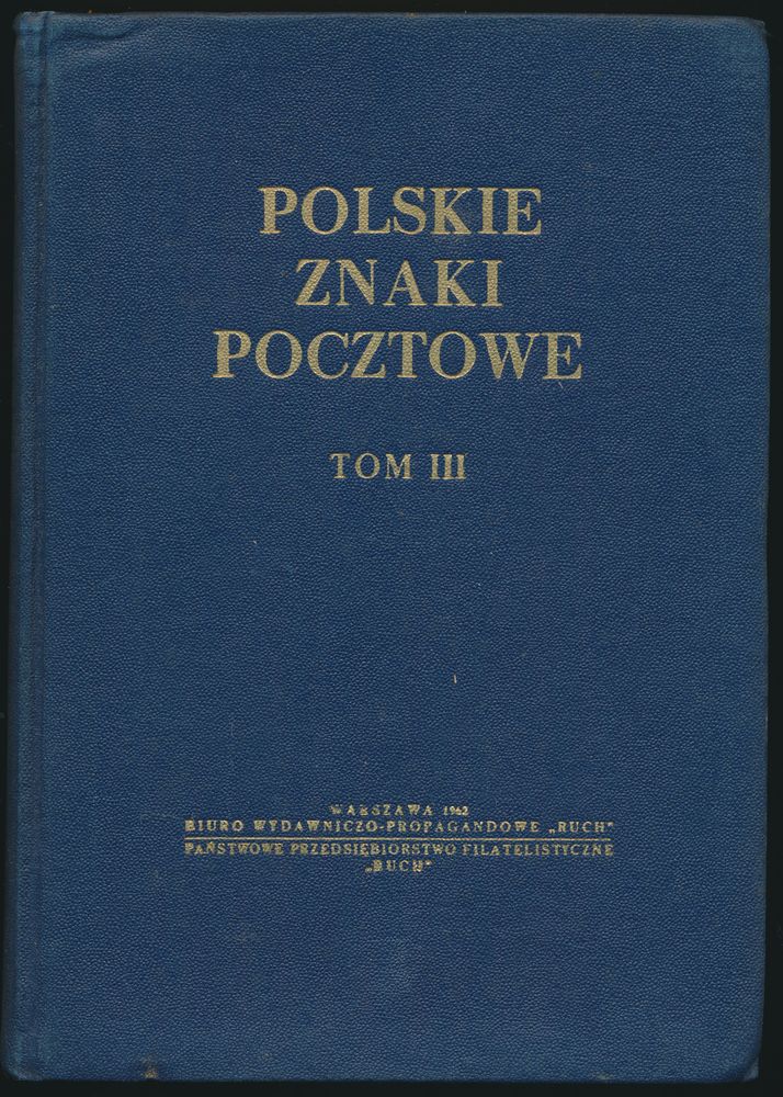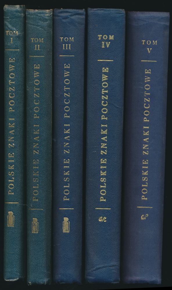 Antoni Łaszkiewicz and Zbigniew Mikulski);" Biuro Wydawniczo - Propagandowe "Ruch", Warsaw"; 1960 - 1973; Printed; bound; Polish; 2079; hardcover; very fine; the gigantic 5-volume handbook covering all aspects of Polish philately, from pre-philately