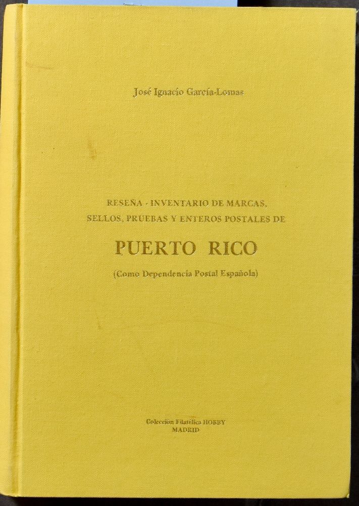 y Enteros Postales de Puerto Rico (Como Dependencia Postal Espanola)"; José Ignacio Garcia-Lomas; Member of the Philatelic Society of Puerto Rico; 1977; Printed; bound/glued; Spanish; 255 pag.; hardcover; in reasonable condition(Image 1)
