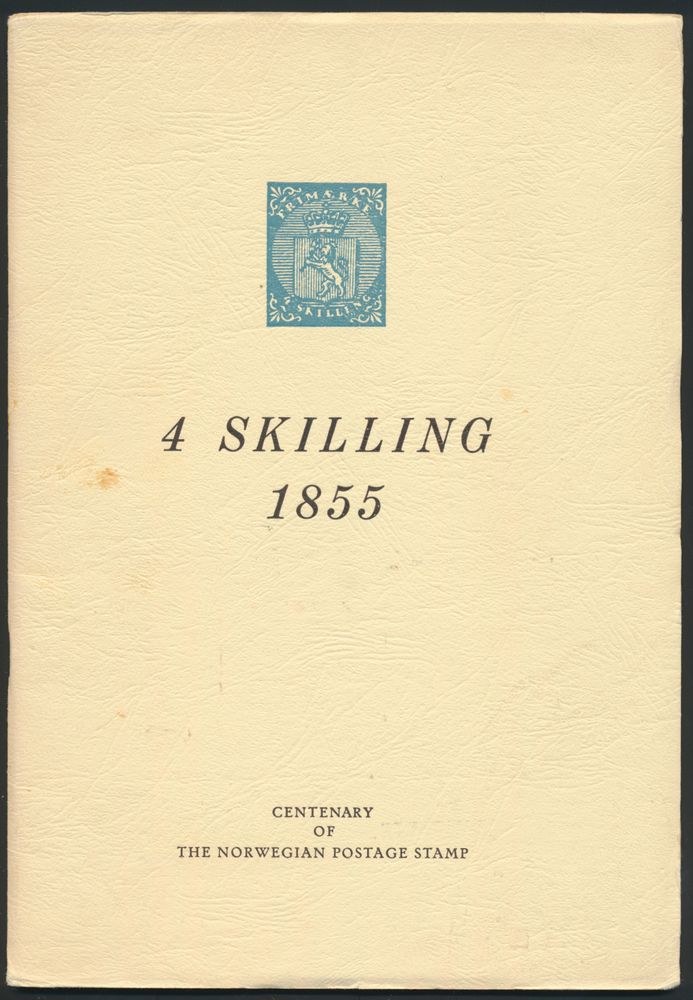 Stamp; J. Jellestad; Norwegian Philatelic Association, Oslo; 1955; Printed; stapled; English; 20 pag.; soft cover; very fine; Useful monograph on the first Norwegian postage stamp, complete with the reprint block (often missing), numbered 4659/5000(Image 1)