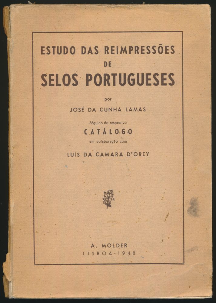 José da Cunha Lamas; A. Molder, Lisbon; 1948; Printed; stapled; Portuguese; 207 pag.; soft cover; in good condition; important work on the many reprints of classic stamps from Portugal and the Portuguese colonies, soft cover slightly worn around the