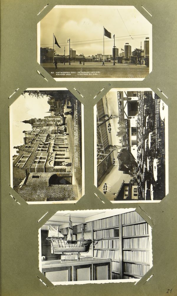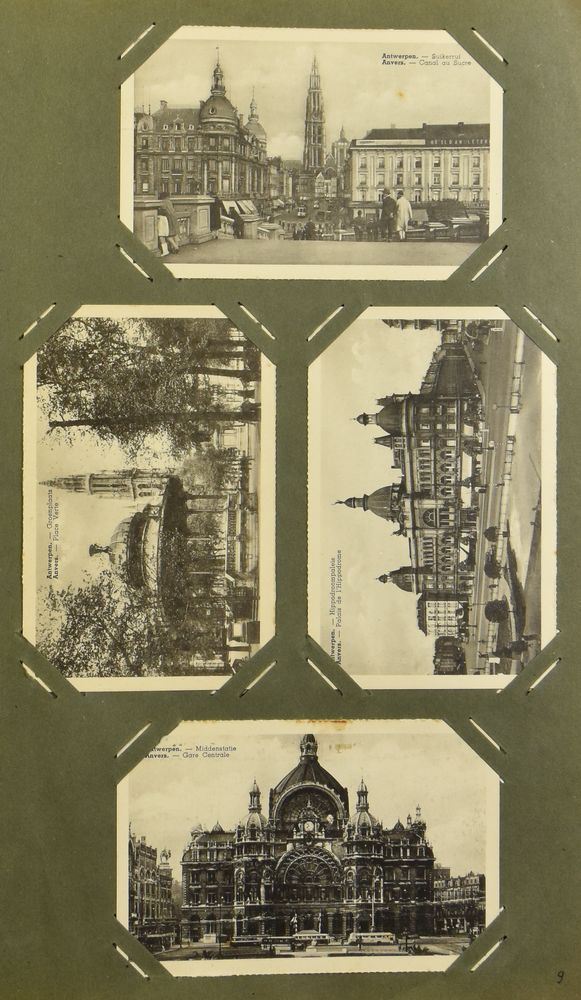 70 image1930 Antwerp, mainly postcards, also some postage stamps, a few documents, etc. in 3 albums (+1,000 items)(Image 1) (Image 2)
