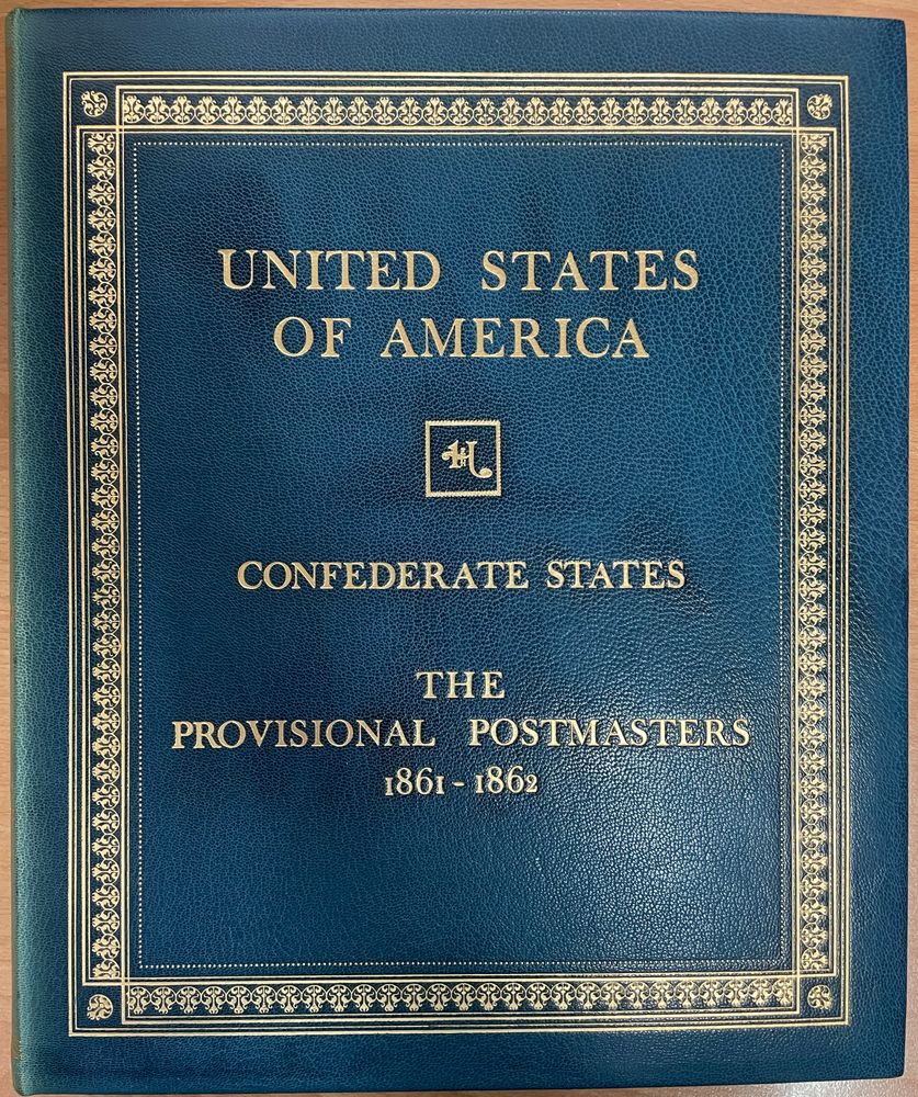 the Erivan Haub Collection of United States Confederate States Postmasters' Provisionals of 1861-62, consisting of most of the greatest rarities in this field and housed in a custom-made blue leather folder made by Camberley Bookbinders. England,