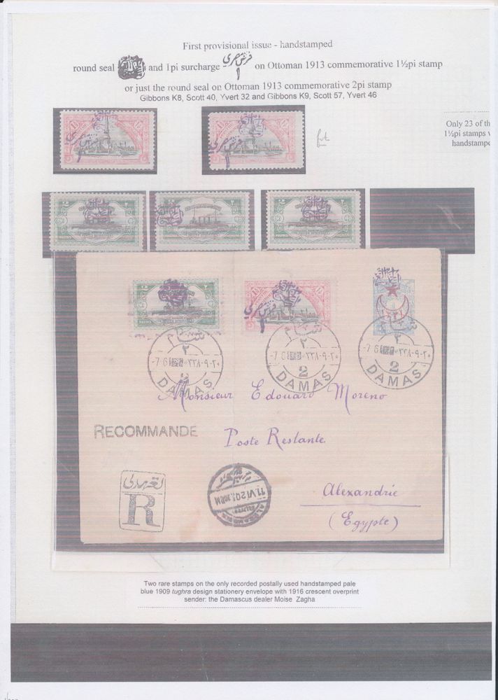 photocopy; ring binder; English; hardcover (ring binders); very fine; colour photocopies of an extensive, albeit somewhat disorganised, collection of early Syrian philately relating to overprints on Ottoman stamps, the British and French periods,
