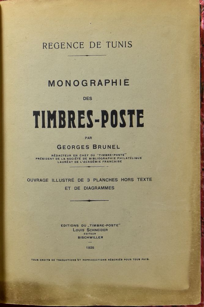 Tunisia, "Monographie des timbres-poste"; Georges Brunel;"