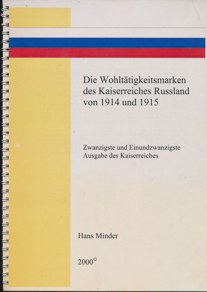 von 1914 und 1915"; Hans Minder; published by the author himself; 2000; Printed; plastic spiral; German; pag. 25; soft cover; very fine; A small but interesting study of Russian charity issues from 1914-1915, well illustrated in colour(Image 1)