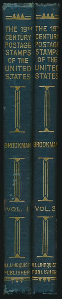 States"; Lester G. Brookman; H.L. Lindquist, New York; 1947; Printed; bound; English; 319 + 305 pag.; hardcover; very fine; The two-volume study of classic postage stamps of the United States, which since its publication has remained one of the most