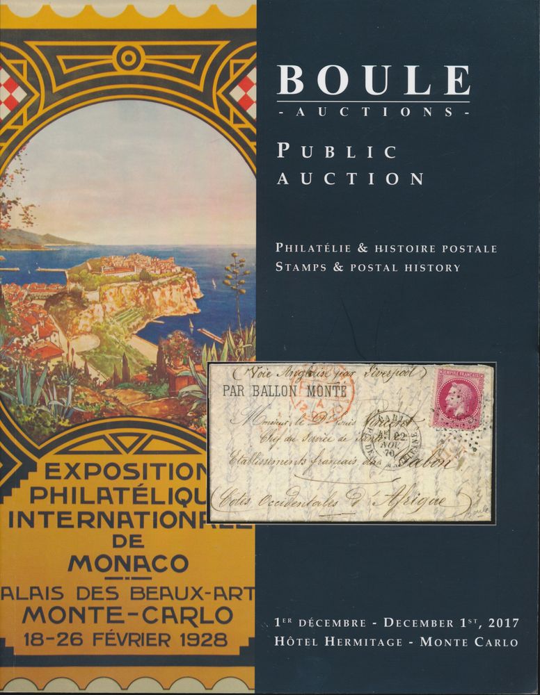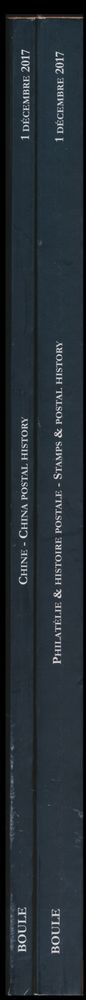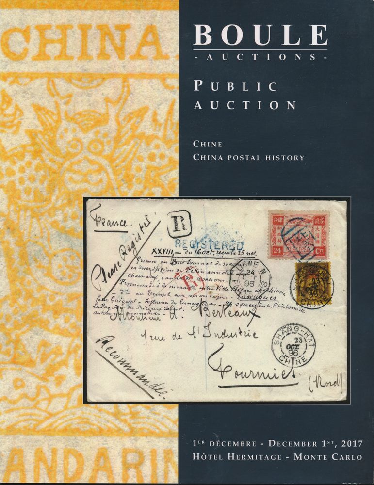 Boule, Monaco; 2017; Printed; stapled; French; approx. 150 + 75 pag.; soft cover; very fine; auction catalogue of the Boule rarities sale held in collaboration with MonacoPhil and including a specialised collection of Chinese postal history presented