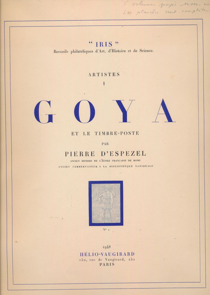 published by the Parisian publisher Hélio-Vaugirard, each on the current visual art of postage stamps in relation to a specific theme, as follows: Goya (Vol. I), The Egypt of the Pharaohs (Vol. III), Argentina (Vol. IV) and Fish (Vol. V), each