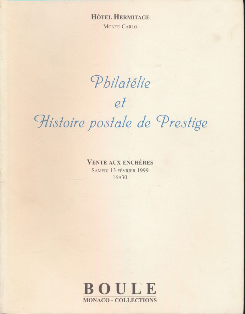 Monaco; 1999; Printed; stapled; French; approx. 120 pag.; soft cover; very fine; Auction catalogue of the annual Boule world rarities sale in Monaco, many interesting items from world philately, great variety, an important reference work.(Image 1)