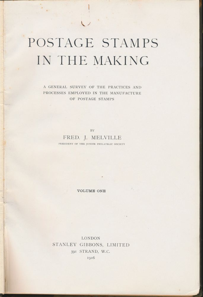 Practices and Processes Employed in the Manufacture of Postage Stamps; Frederick John Melville; Stanley Gibbons Ltd; 1916; Printed; bound/glued; English; 198 pag.; hardcover(Image 1)