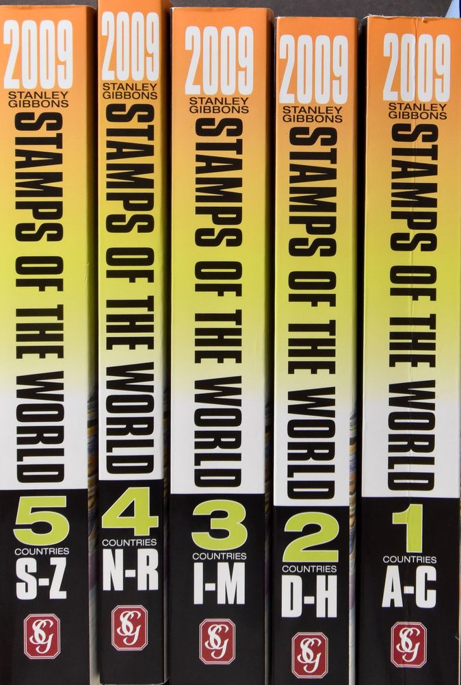 933 LIT imageStanley Gibbons 2009 Simplified catalogue, stamps of the world, in 5 parts, including A-C, D-H, I-M, N-R and S-Z; Stanley Gibbons Editorial Team; Stanley Gibbons Ltd.; 2009; printed; glued; English; +/-5,500 pag.; soft cover; in good condition(Image 1) (Image 2)