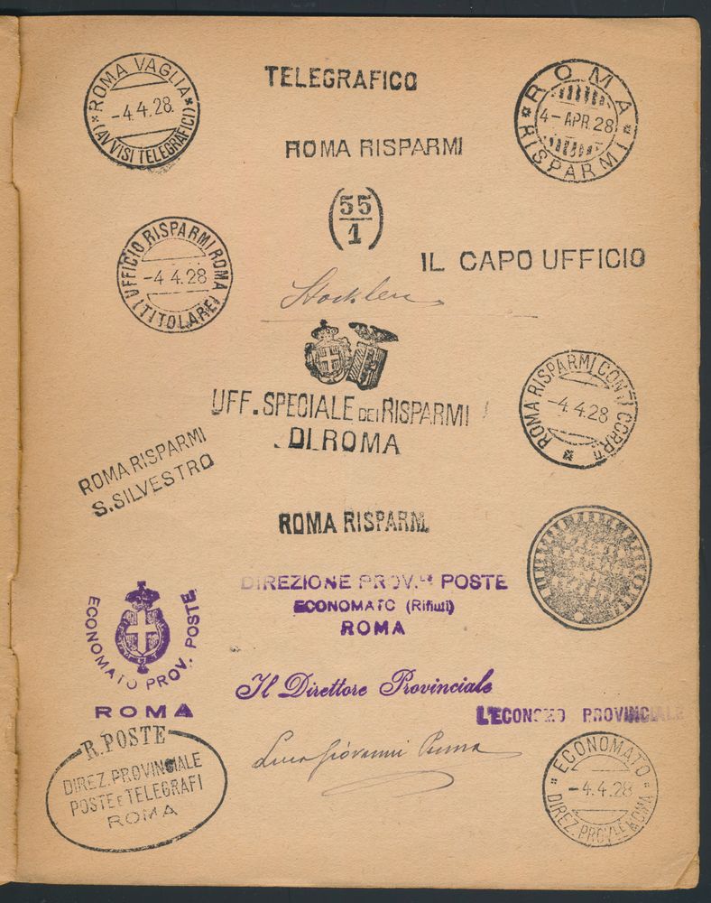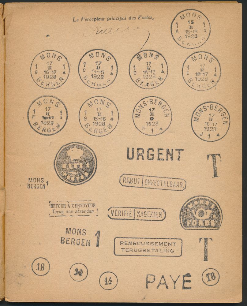 927 LIT imageSketchbook with printed cancellations from 1928; Printed; stapled; approx. 70 pag.; soft cover; in good condition; An absolutely unique collection of three sketchbooks used in 1928 by a collector (most likely of Italian origin) to collect examples of the postmarks in use at various post offices, mostly in Italy but also in Monaco and Mons in Belgium (!!!). Many postmasters cooperated by also signing the pages on which they applied the postmarks, some even applied the various postage labels in use (e.g. Express, etc.). It is difficult to overestimate the importance and uniqueness of these items, a piece of pure philatelic history in book form.(Image 1) (Image 2) (Image 3) (Image 4) (Image 5) (Image 6)