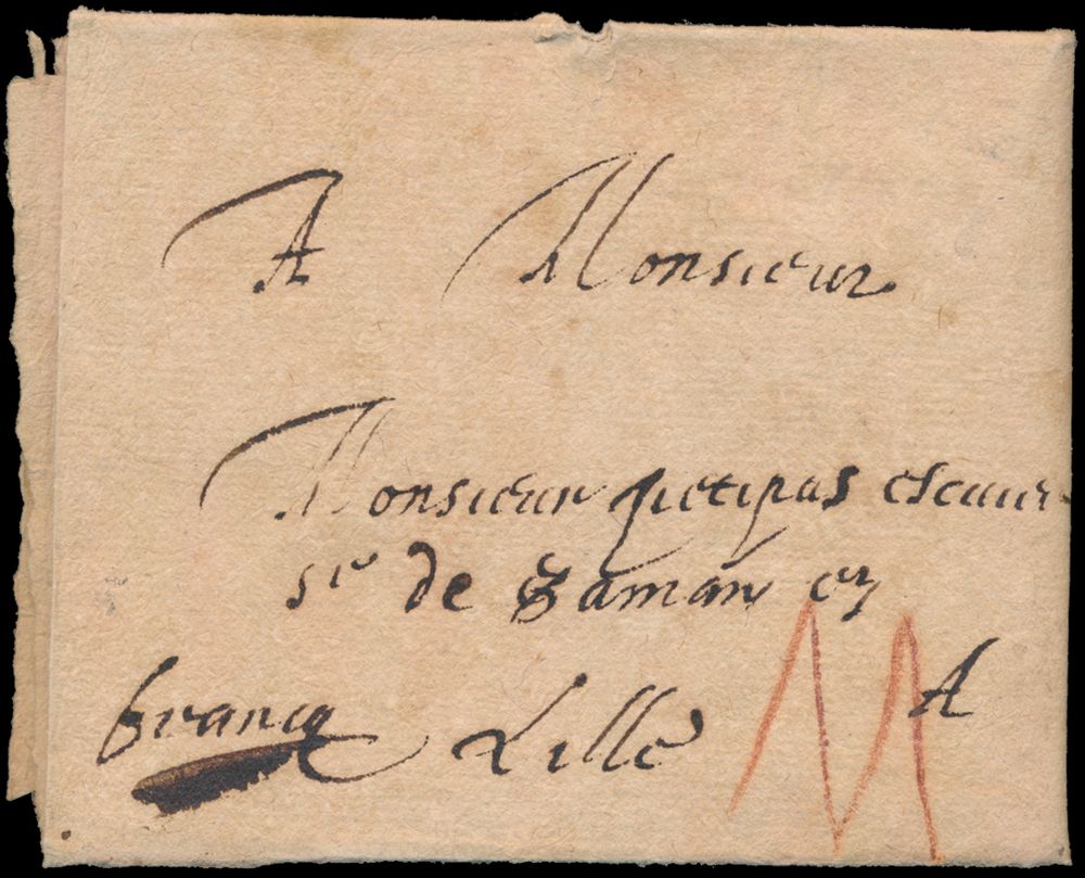 937 image1628 Forerunner with contents from Malines 6 May 1628 to Lille, with written "franco" + "M" in red pencil, vf/f(Image 1)