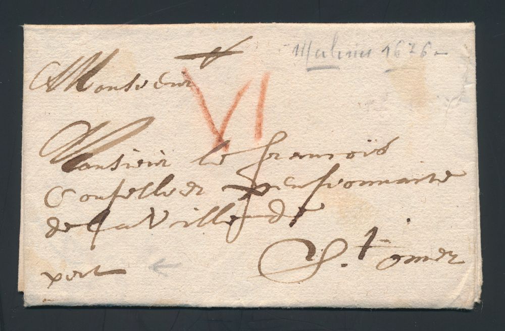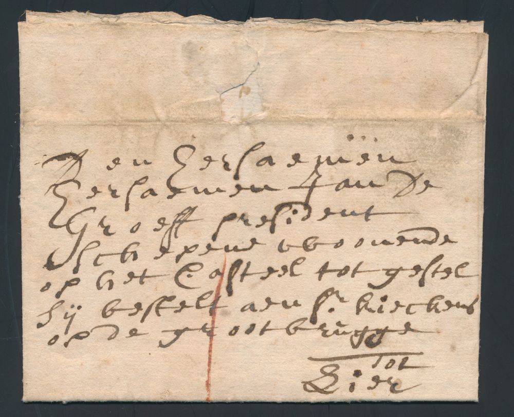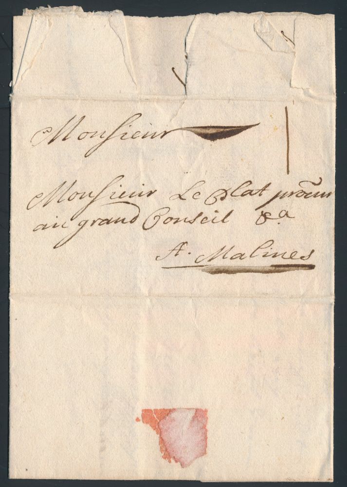 941 image1676 Forerunner with contents, from Mechelen, charge VI in red chalk, manuscript "charge" bottom left, vf(Image 1)