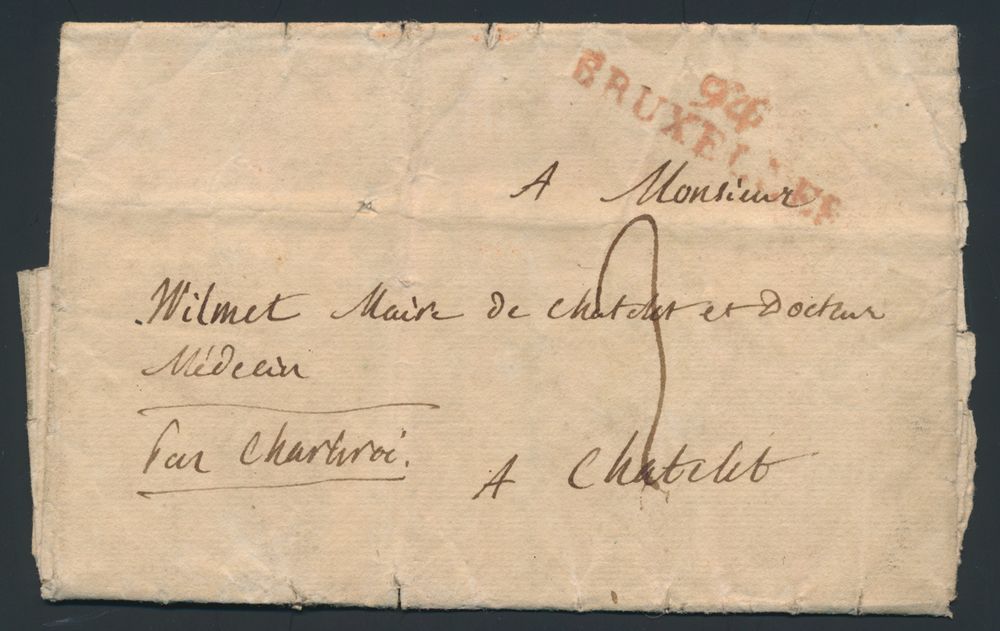 960 image1808 Forerunner with contents of griffe "Bruxelles 94", 12 June 1808 to Châtelet with written "Par Charleroi", charge: 3 décimes, vf/f(Image 1) (Image 2)