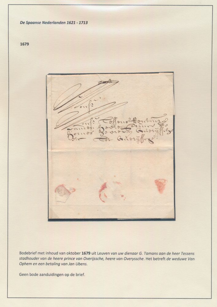 943 image1679 Messenger letter with contents, from Leuven, dated October 1679, to Overijse (Mr Tessens, stadtholder of the "lord prince of Overijsche"), more information with the lot (historical value), vf(Image 1)