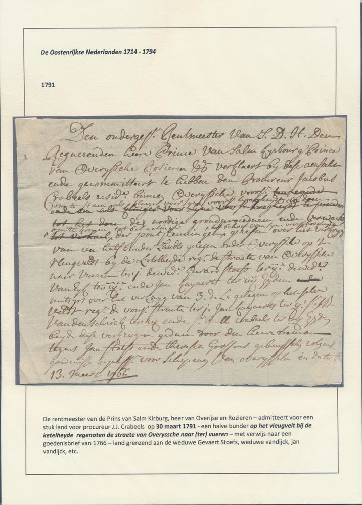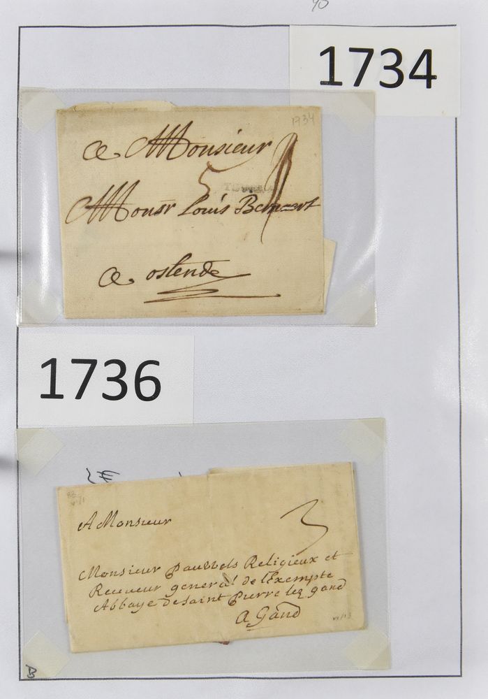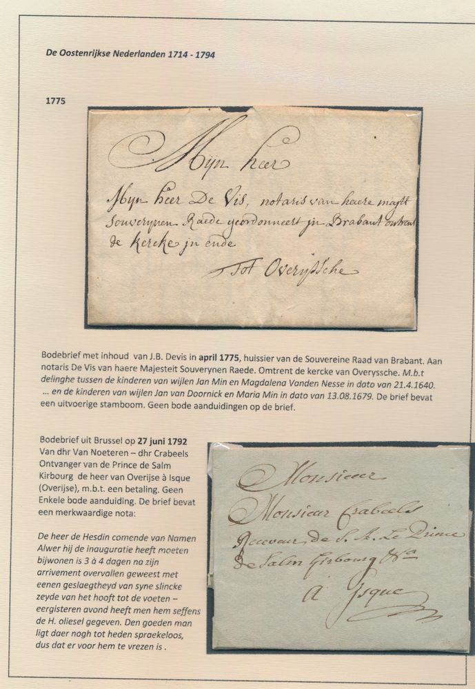 953 image1775 and 1792, 2 messenger letters with contents, two letters to (Ysque) Overijse, beautiful documentation accompanying this lot, such as several translations of the contents of the letter, more information with the lot, (Historical value), vf(Image 1)
