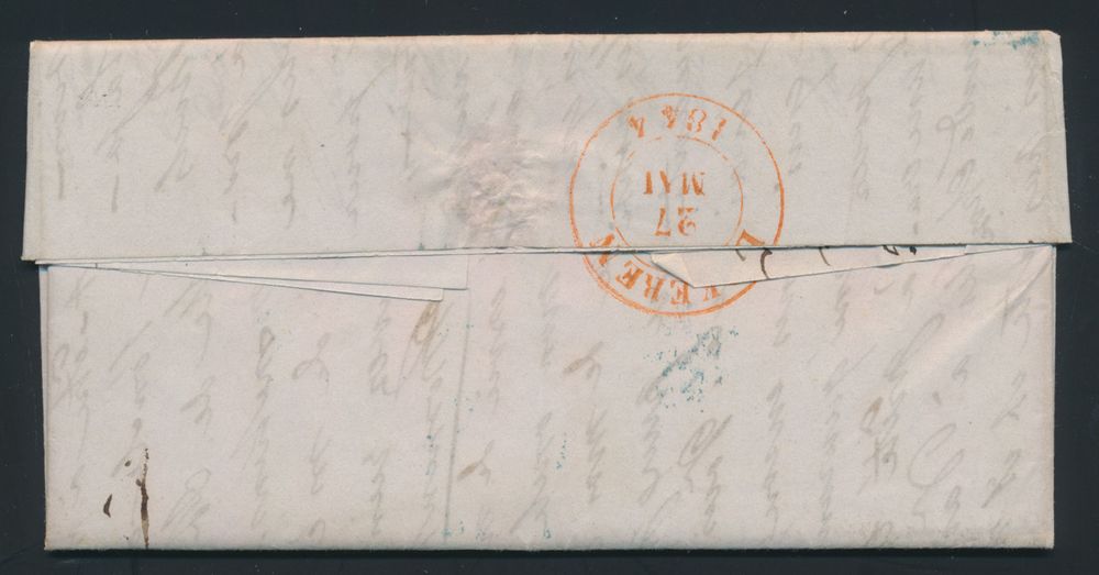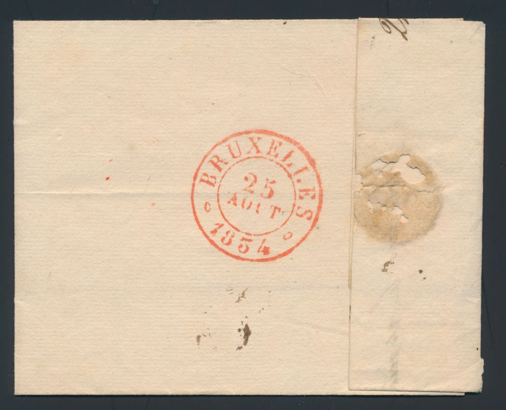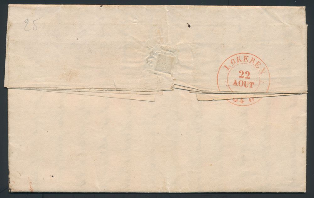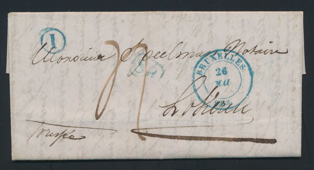 976 image1844 Forerunner with contents, from Brussels, with post office box I (Ixelles), dated 26 May 1844, to Lokeren, charge 4 decimes, manuscript "pressee", vf(Image 1) (Image 2)