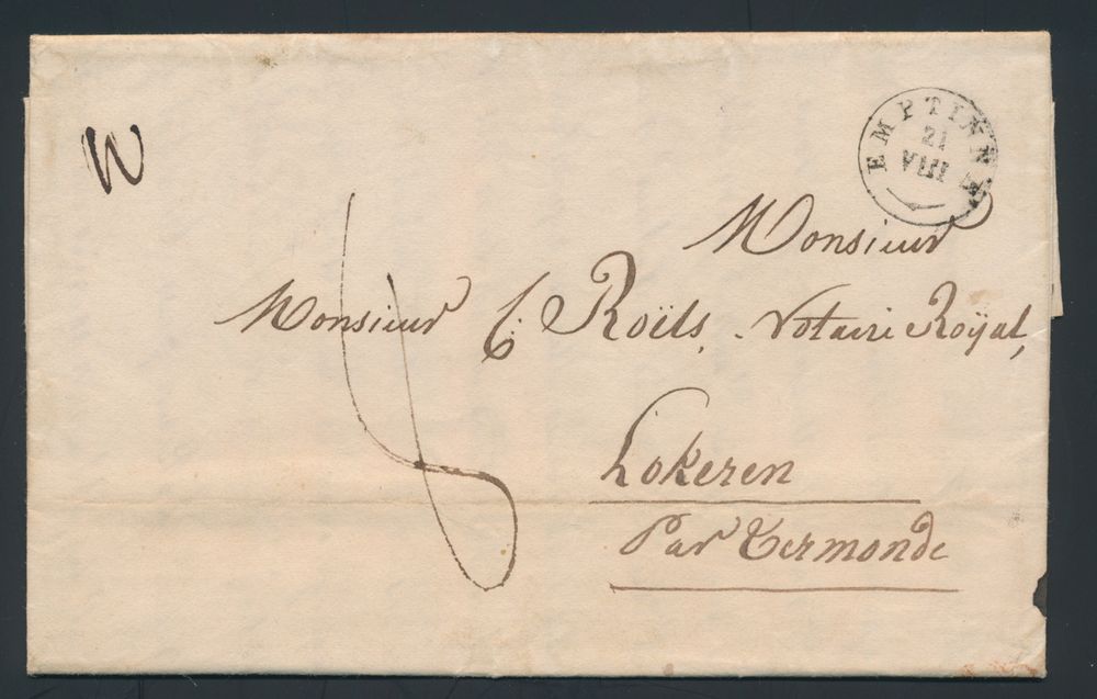 971 image1840 Forerunner with contents, from Emptinne (Type 18 cancellation), dated 21 August 1840, to Lokeren, charge 8 decimes, the letterhead is from Mianoye, vf(Image 1) (Image 2)